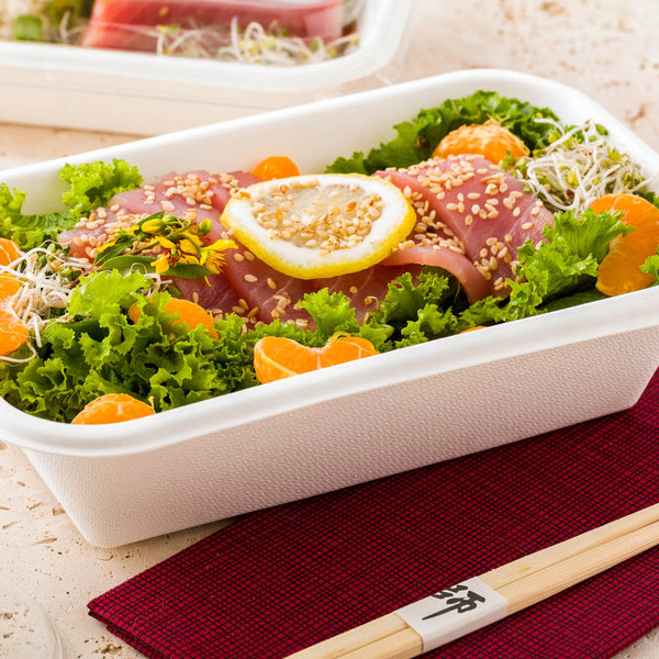 Made from sugarcane fibers, also known as bagasse, these containers are sustainable. Choose from a natural brown finish or a sleek white finish to complement your to-go orders.