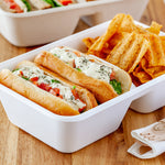 Made from sugarcane fibers, also known as bagasse, these containers are sustainable. Choose from a natural brown finish or a sleek white finish to complement your to-go orders.