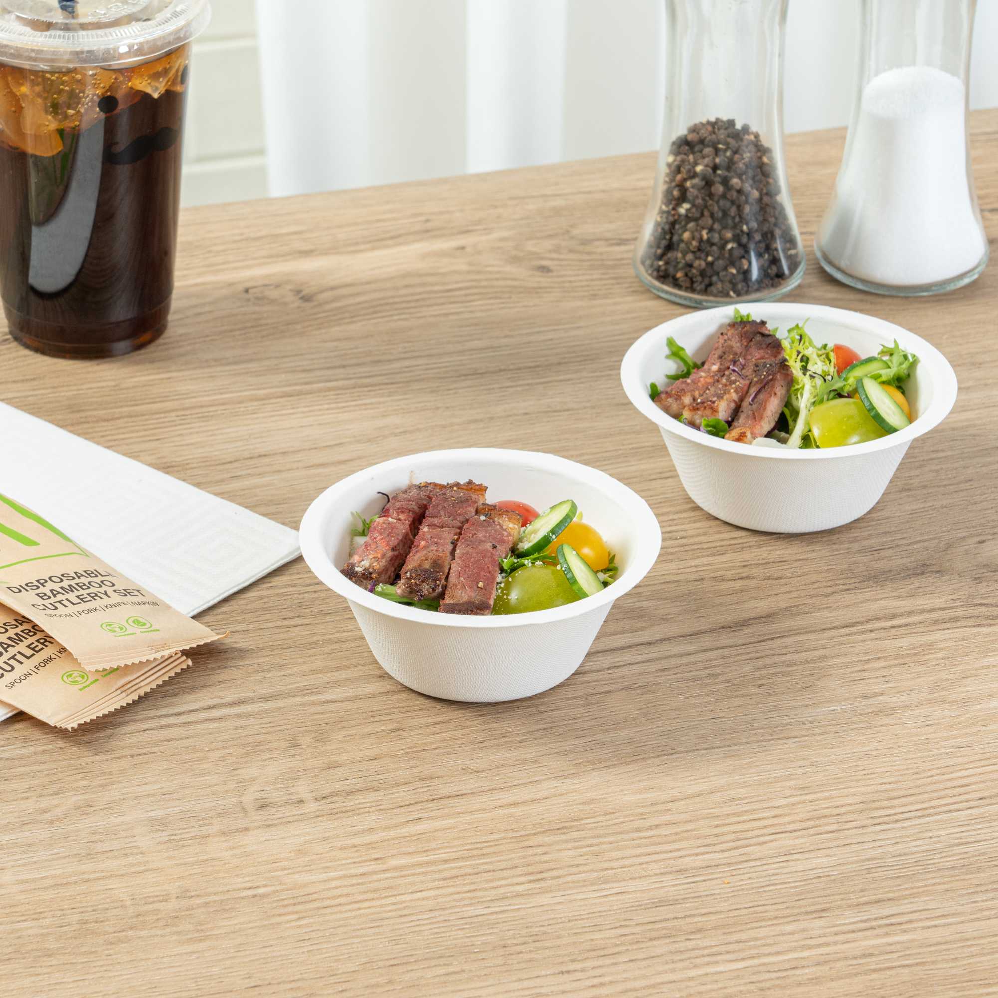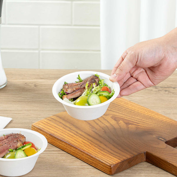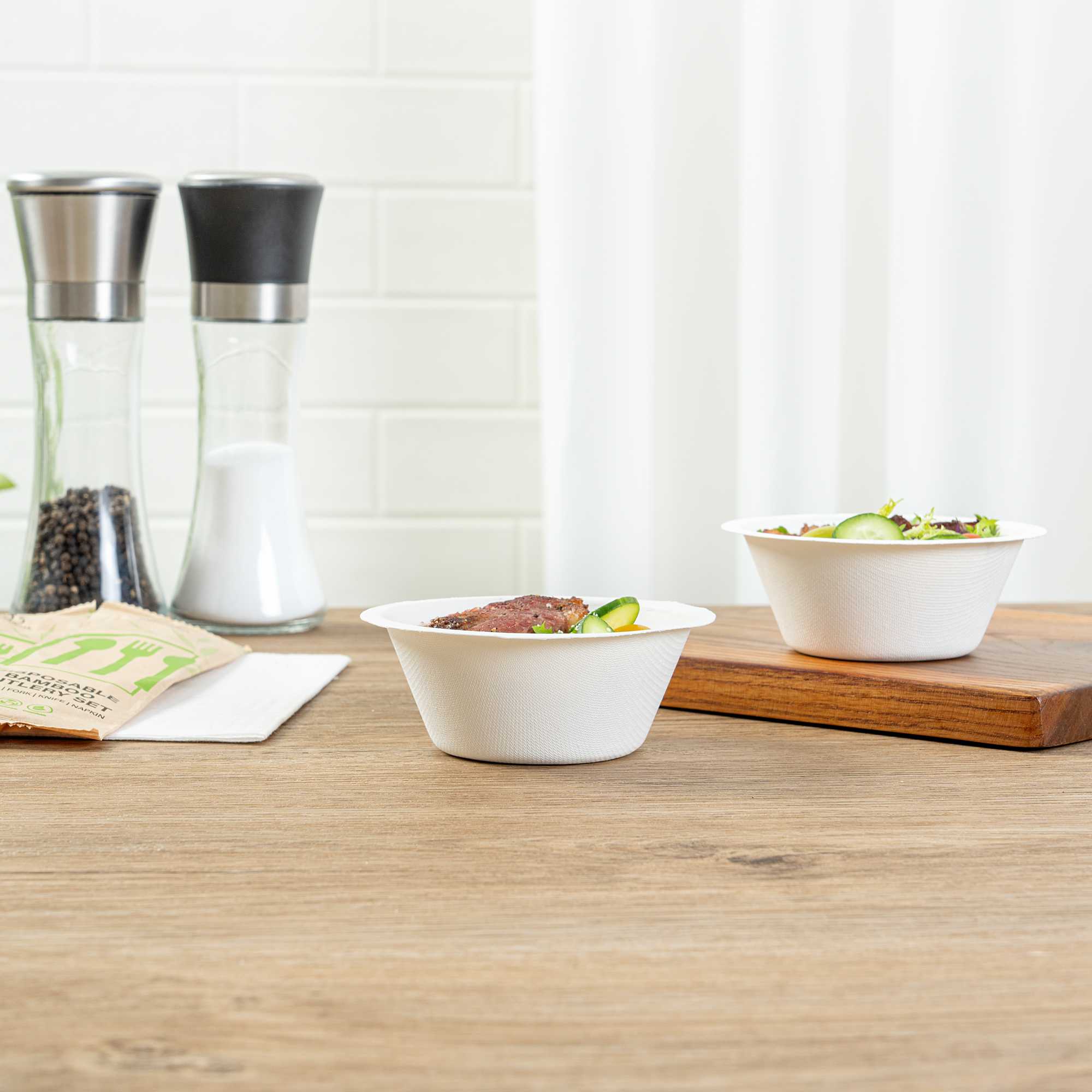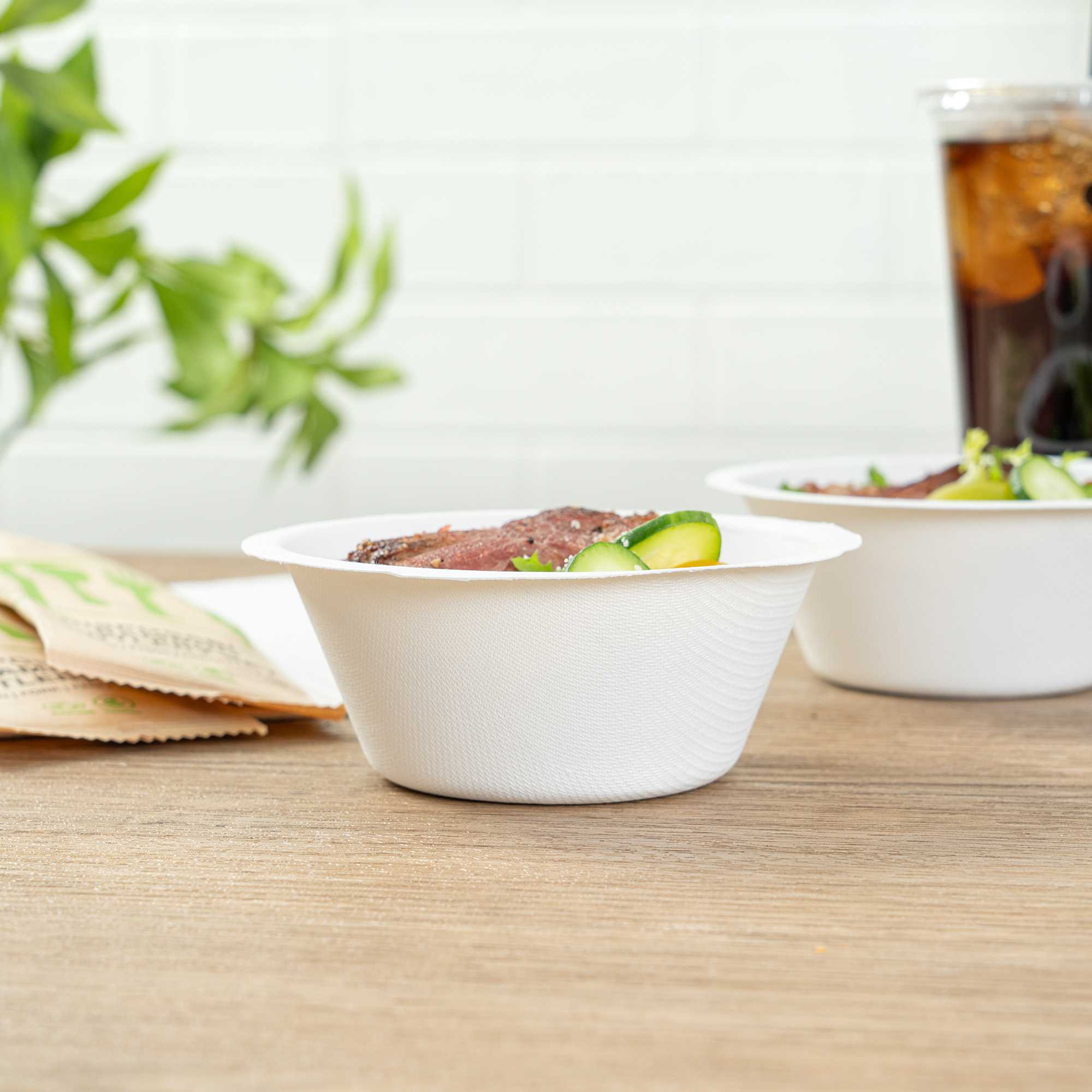 - Unbleached bagasse provides sustainable alternative to traditional plastic or styrofoam bowls