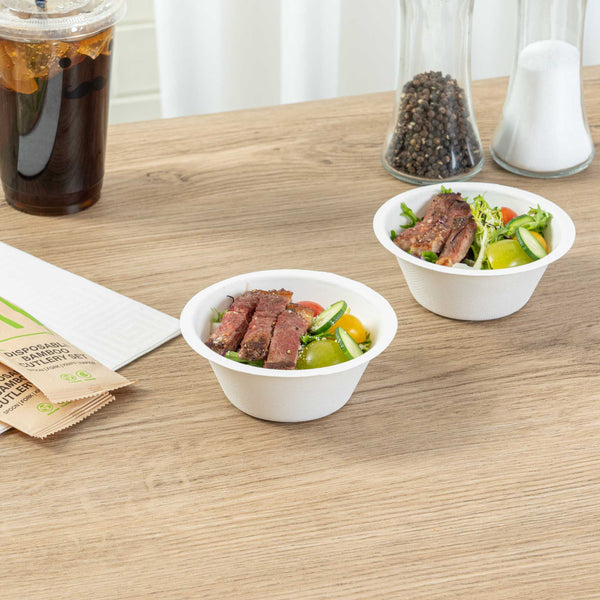 8 OZ ROUND WHITE SUGARCANE / BAGASSE SALAD BOWL