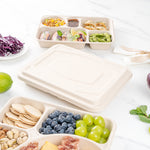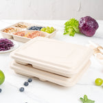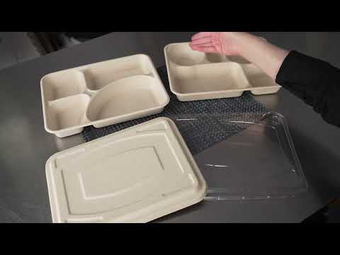 Secure customers' to go or delivery orders using our Pulp Tek Rectangle Natural Bagasse Flat Lids. Pair our compatible food containers with lids to maintain the freshness of dishes during transport (SKU: RWA1002K). Crafted from natural sugarcane fibers, these bagasse flat lids are commercially compostable and biodegradable, providing a sustainable alternative to traditional carry out lids. These container lids are grease-resistant, preventing oil from leaking through. Conveniently freezer-safe and microwave-safe, these to go containers with lids can be simply placed in the freezer for easy meal storage or in the microwave to reheat orders before serving. These disposable lids measure 11.2 inches in length by 8.6 inches in width. Sold in a 100 count box. This item will only degrade outside of the traditional solid waste stream. Containers are available and sold separately.