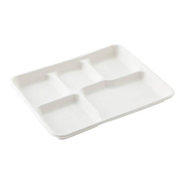 RECTANGLE WHITE SUGARCANE / BAGASSE FOOD TRAY - 5 COMPARTMENTS