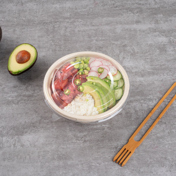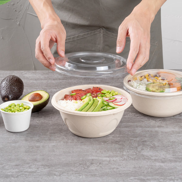 ROUND CLEAR PLASTIC FLAT LID - FITS BAGASSE TO GO BOWL