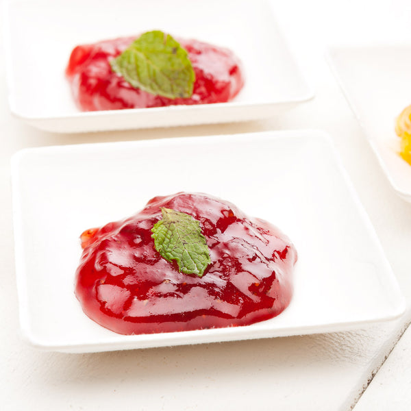 Offer customers your signature fare with these Pulp Tek Square White Sugarcane / Bagasse Mini Modern Plates. Crafted from bagasse, the byproduct of sugarcane processing, these disposable dishes are commercially compostable and biodegradable to streamline your cleaning process. The modern square shape of these biodegradable plates stylishly showcases your delectable samples, appetizers, and desserts. Perfect for maintaining the temperatures of your dishes, these mini dessert plates are freezer-safe and microwavable to keep your foods tasting delicious. These eco-friendly plates are naturally grease-resistant to prevents oily sauces from seeping through and creating messes. Featuring raised walls and a lightweight construction, these bagasse plates are easily transported when serving your customers. With a white finish, these pulp plates make treats the center of attention at your catered event or restaurant. These 1-ounce commercially compostable plates measure 2.5 inches in length. Sold in a 100 count box. This item will only degrade outside of the traditional solid waste stream.