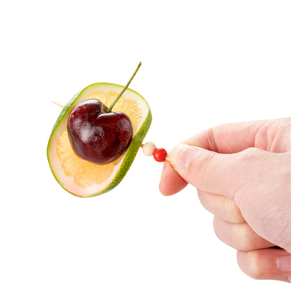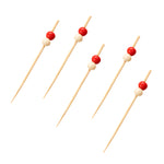Garnish your cocktails with our Red Bamboo Beaded Skewers. These bamboo skewers are highly durable and do not flex or break. The decorative end of these bamboo cocktail picks features a red and a creamy white bead, allowing you to present dishes in a creative and fun way. With a precisely pointed end, these olive picks can pierce into your burgers easily and hold their layers together. These brochettes are heat-resistant, so customers can enjoy hot kebabs, tikkas, or meatball lollipops conveniently without burning their fingers. Made from bamboo, these sandwich skewers are disposable and make your post-event cleaning process easier. With a microwavable feature, these cocktail picks allow you to reheat your meat lollipops conveniently. The smooth surface of these skewers for appetizers has no splinters and allows your guests to dip their finger foods in sauces effortlessly. These fruit skewers are suitable for restaurants, cafes, cocktail parties, banquets, or wedding events. Measuring 2.75 inches in length, these cocktail skewers are apt for fruit kabobs, canapes, mini desserts, or chocolate fondues. Shipped in a 1000 count box.