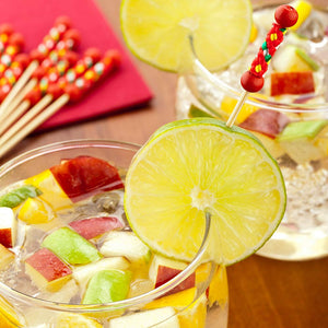 Give your handcrafted cocktails and bite-sized appetizers a much-needed punch of pizzazz with these Red Pixy Bamboo Braided Picks. Featuring multi-hued braided detailing and bright red beaded accents, these biodegradable drink picks are perfect for skewering lemon peels and orange wedges to create amazing cocktail decorations. With their easy-to-hold braided handle, these commercially compostable bamboo picks are excellent for serving bite-sized hors d'oeuvres like teriyaki chicken bites and bacon-wrapped dates. These braided bamboo picks are suitable for picking hot and cold foods. Measuring 4 inches long, these red picks are ideal for large catered events. Sold in a 1,000 count box.