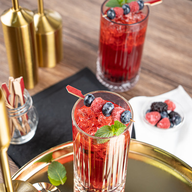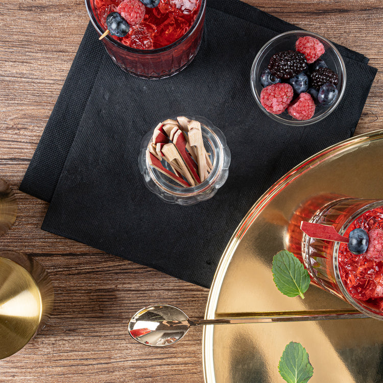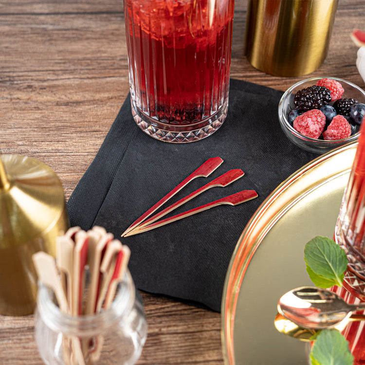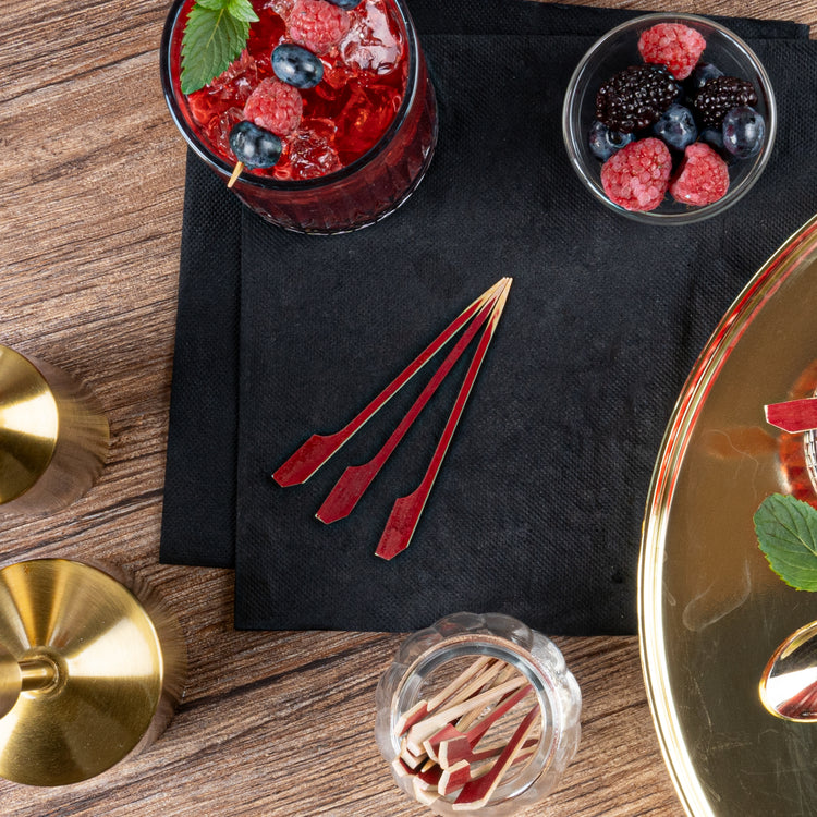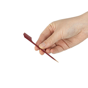 Instantly upgrade food or drink presentations with our Pixy Red Bamboo Paddle Skewers. Crafted from sustainable bamboo, these durable paddle skewers are a great eco-friendly alternative to plastic picks and offer a break-resistant construction to reliably hold small foods. These bamboo paddle skewers feature a sleek red finish that adds an upscale look to cocktail garnishes or hors d'oeuvres. With an easy-to-grip handle, these bamboo skewers allow guests to easily grab passed appetizers at a catered event or provide a sanitary way for kitchen staff to prepare ingredients. These bamboo paddle picks are built with a sharp end to effectively pierce garnishes or hold together sandwiches without snapping. Measuring 4 inches long, these red skewers provide enough space to contain fruits, vegetables, cheeses, and other small foods. Available in a 1,000 count box. Note: slight variations in color are possible.