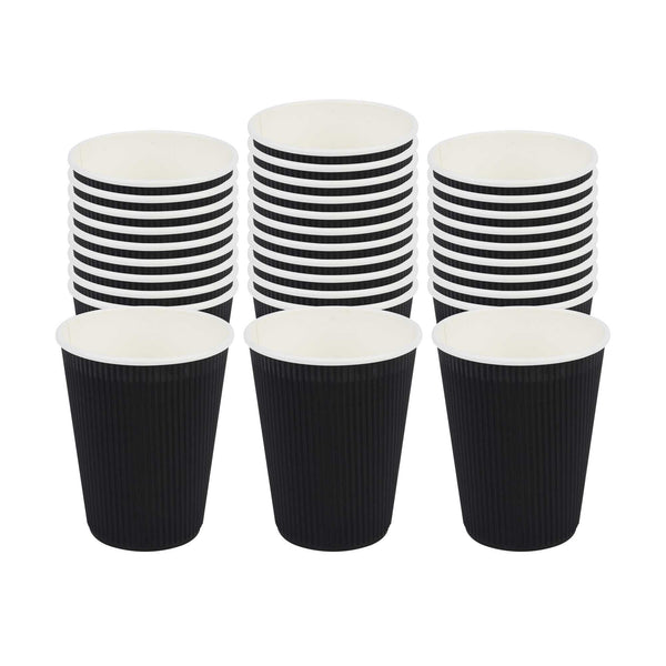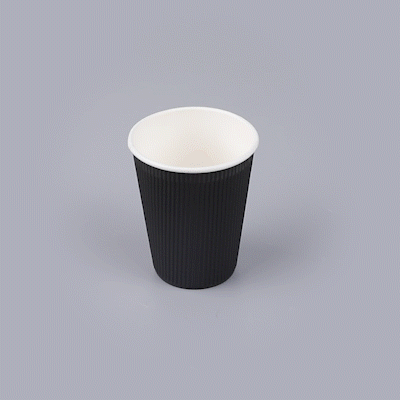 12 OZ BLACK PAPER COFFEE CUP - RIPPLE WALL