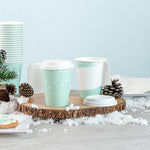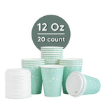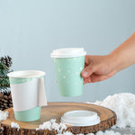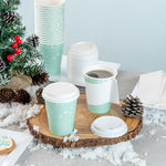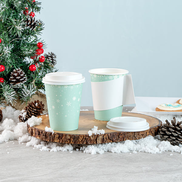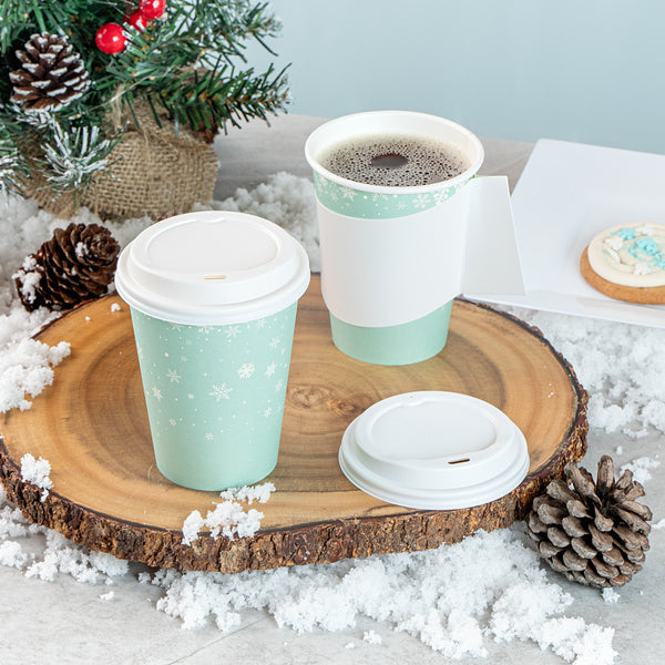 Embrace the festive season with our Restpresso 12-ounce Blue Christmas Snowflakes Paper Single Wall Coffee Cups. These coffee cups come equipped with white plastic lids that form a secure seal, ensuring an optimal on-the-go sipping experience. Featuring an enchanting snowflake design on a blue finish, these paper coffee cups evoke the cozy charm and festive spirit of the season. The greaseproof PE lining inside these hot drink cups ensures a mess-free drinking experience for your patrons. With a rolled rim, these disposable cups for coffee provides a smooth beverage flow with every sip. These 12-ounce coffee cups are crafted from durable paper and suitable for serving hot and cold drinks. The leak-resistant seams of these disposable coffee cups minimize the risk of potential leaks, making them reliable and efficient. Adorned with a “recycle me” message on the bottom, these hot cups with lids encourage guests to dispose of them in a planet-friendly way. These disposable paper cups can be discarded after use for an efficient cleaning experience. Measuring 3.5 inches in diameter by 4.68 inches in height, these coffee cups with lids have a capacity of 12 ounces. Sold in a 20 count box.