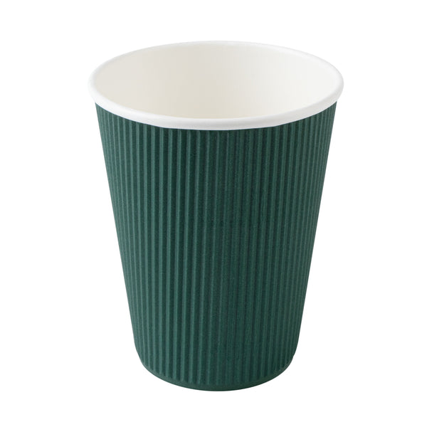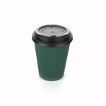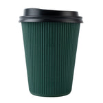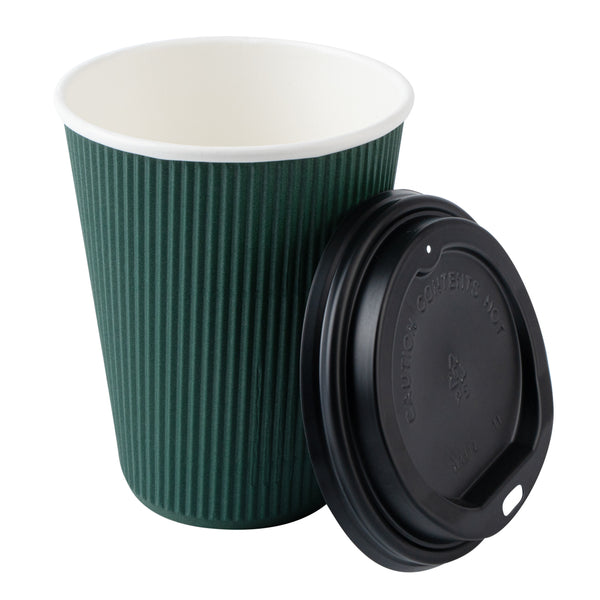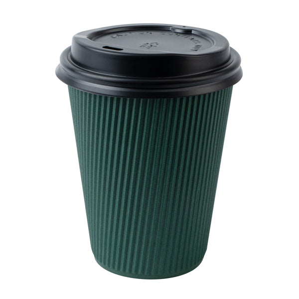 12 OZ DARK GREEN PAPER RIPPLE WALL COFFEE CUP - WITH BLACK LID