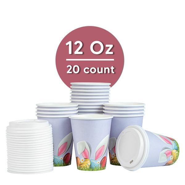 12 OZ EASTER PAPER SINGLE WALL COFFEE CUP - WITH LID