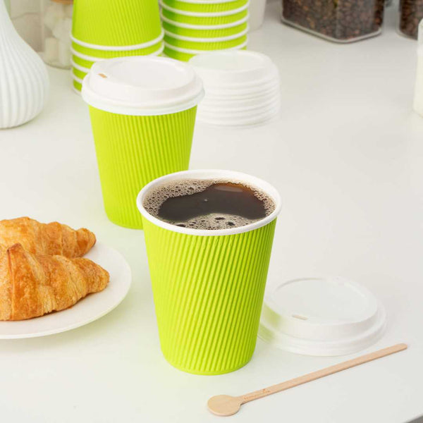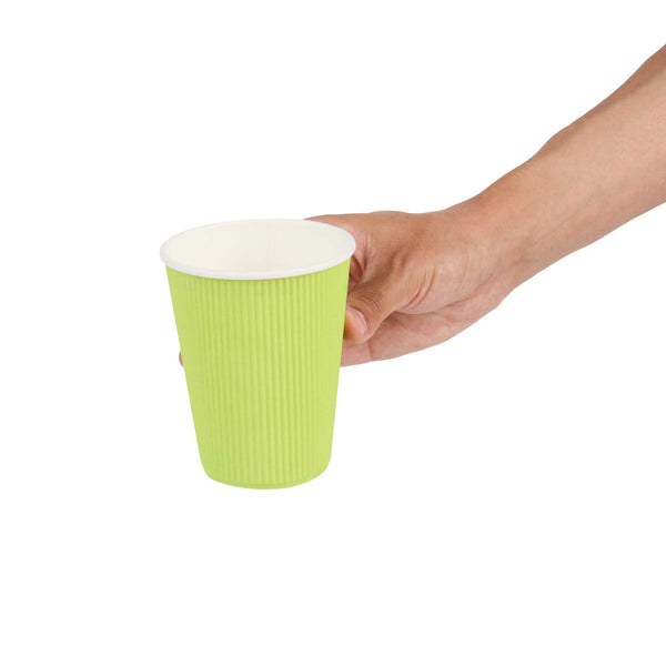 12 OZ ECO GREEN PAPER COFFEE CUP - RIPPLE WALL