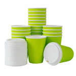 12 OZ ECO GREEN PAPER RIPPLE WALL COFFEE CUP - WITH WHITE LID