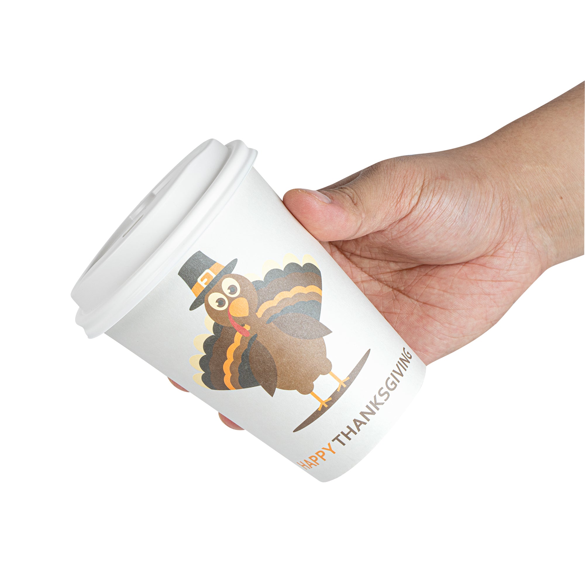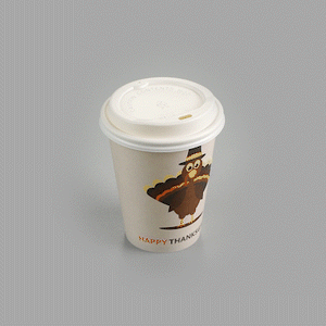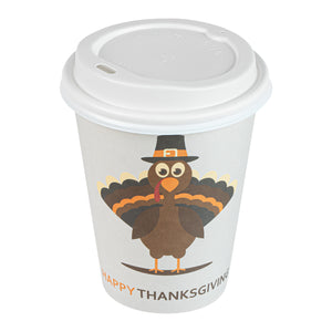 12 OZ HAPPY THANKSGIVING PAPER SINGLE WALL COFFEE CUP - WITH LID