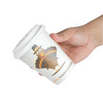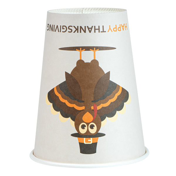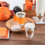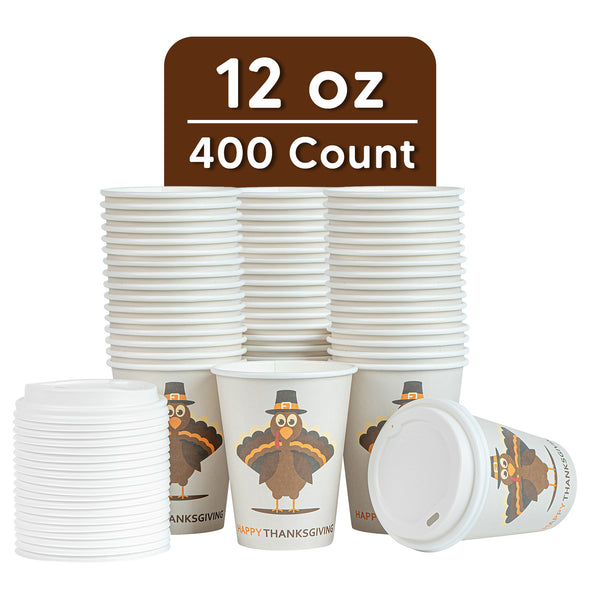 Celebrate the festive season with our Restpresso 12-ounce Happy Thanksgiving Paper Single Wall Coffee Cups. These disposable coffee cups come with white plastic lids that form a secure seal to prevent spills, ideal for an on-the-go sipping experience. Featuring an animated turkey, these paper coffee cups bring a fun and festive touch to your Thanksgiving celebration, making each drink feel unique and seasonally themed. The greaseproof PE lining of these hot drink cups ensures a mess-free drinking experience, ideal for busy cafes and coffee shops. These 12-ounce coffee cups are crafted from premium paper and are durable, making them suitable for serving hot and cold drinks. The rolled rim design of these coffee cups with lids provides a smooth flow of beverages and an enhanced drinking experience. With leak-resistant seams, these hot cups with lids minimize the risk of potential leaks, keeping your customers' hands and clothes clean. Adorned with a “recycle me” message on the bottom, these disposable cups for coffee encourage guests to dispose of them in a planet-friendly way. These 12-ounce cups are disposable and can be discarded after use for an easy cleanup. Measuring 3.5 inches in diameter by 4.68 inches in height, these coffee cups have a capacity of 12 ounces. Sold in a 400 count box.
