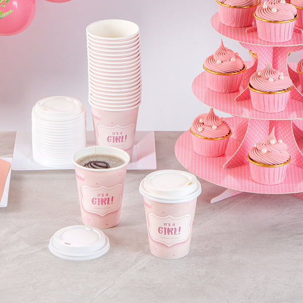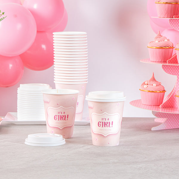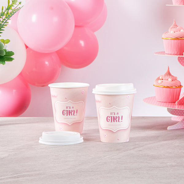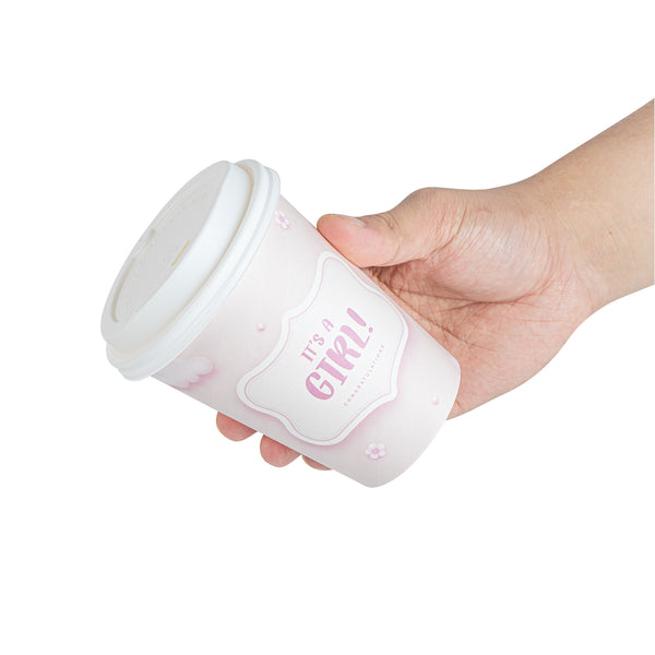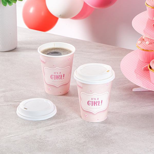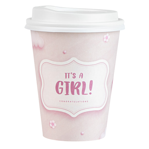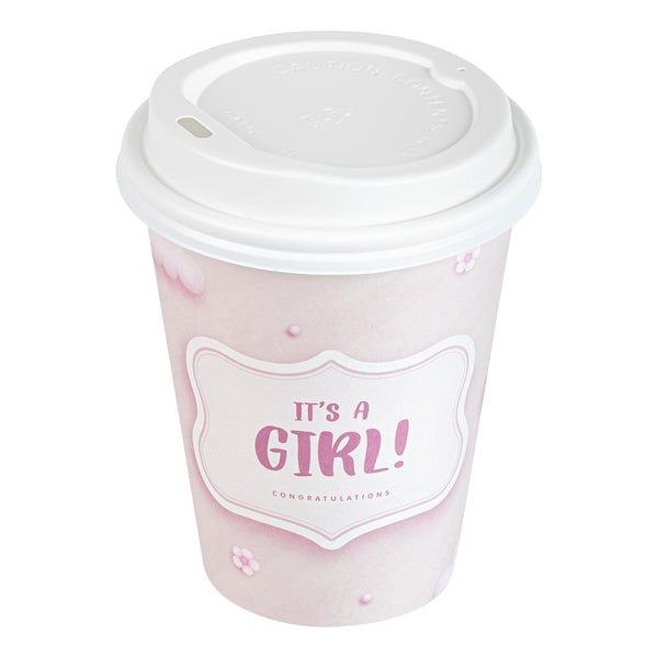 12 OZ IT'S A GIRL PAPER SINGLE WALL COFFEE CUP - WITH LID