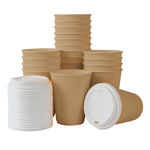 12 OZ KRAFT PAPER RIPPLE WALL COFFEE CUP - WITH WHITE LID
