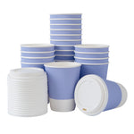 Ensure customer satisfaction with spill-free beverage service. The Restpresso 12 oz Light Purple Paper Ripple Wall Coffee Cups offer a unique ripple wall design that insulates beverages, reducing heat transfer and eliminating the need for additional sleeves. Made from sturdy purple paper, these insulated paper cups provide a non-slip grip, ensuring safe handling for baristas and patrons alike. Each cup includes a secure white lid, creating a coffee cups with lids solution that prevents spills and maintains optimal beverage temperature during transit. With a 90 millimeter diameter, these cups fit standard cup holders, enhancing convenience for customers on the move. Measuring 3.6 inches in width and height, these disposable cups boast a vibrant light purple color, elevating your café's presentation and brand image. Ideal for coffee shops and event catering, these ripple wall coffee cups support sustainability initiatives with their recyclable material. Sold in a 20 count box.