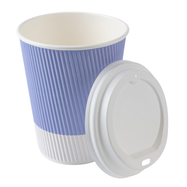 12 OZ LIGHT PURPLE PAPER RIPPLE WALL COFFEE CUP - WITH WHITE LID