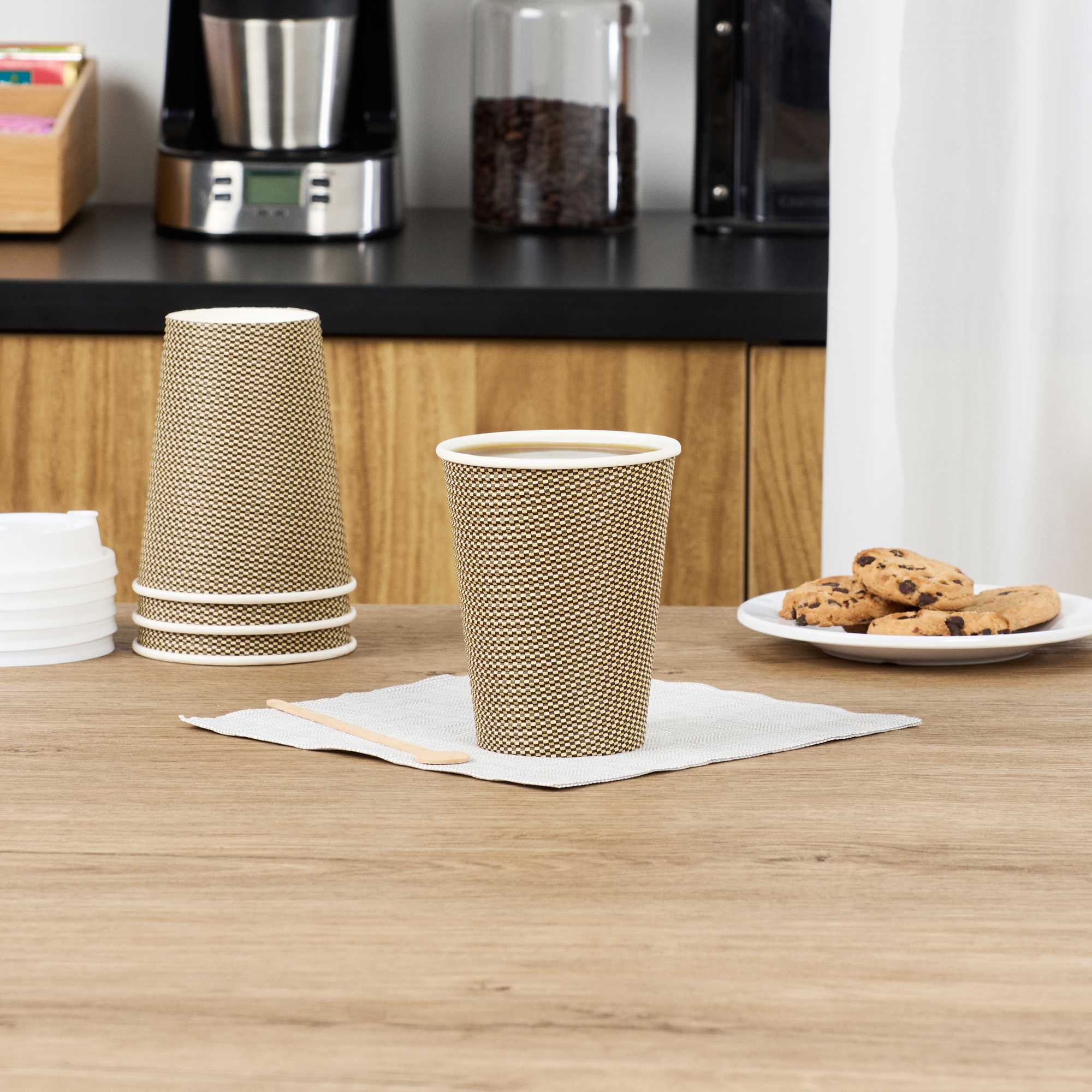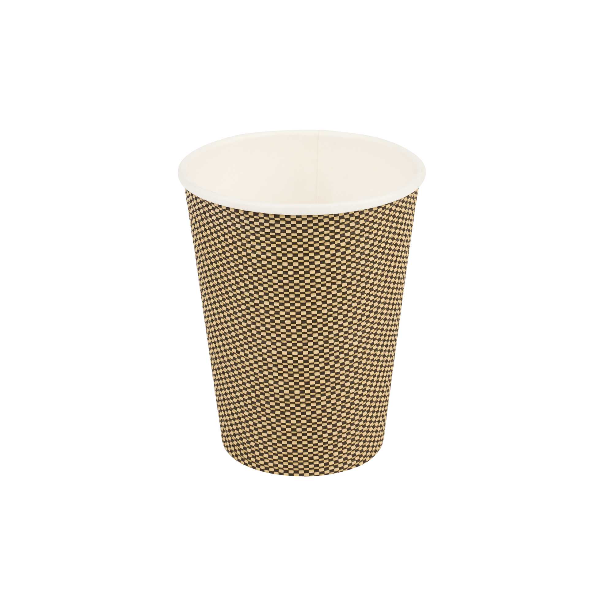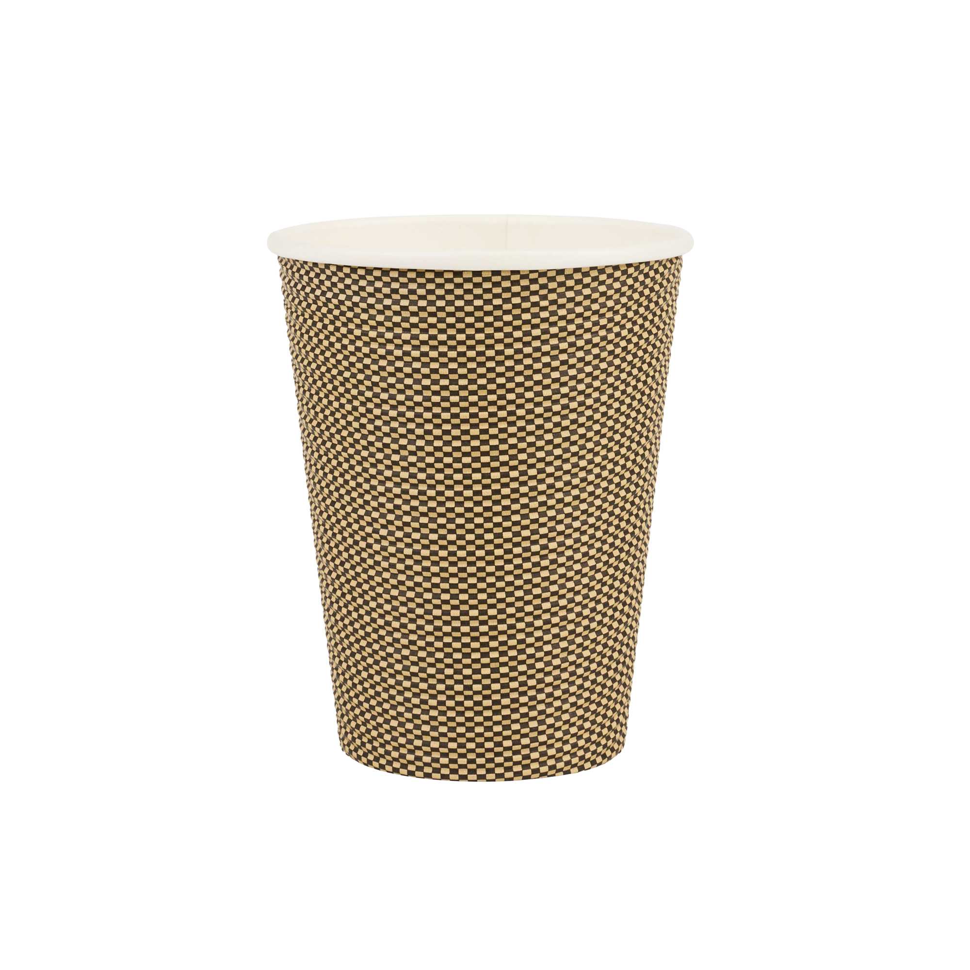 12 OZ MOCHA PIN CHECK PAPER COFFEE CUP - SPIRAL WALL