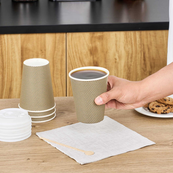 Thanks to the sturdy double-walled construction, these cups stay cool to the touch and will never burn your fingers. No costly sleeves or wasteful double cupping needed!