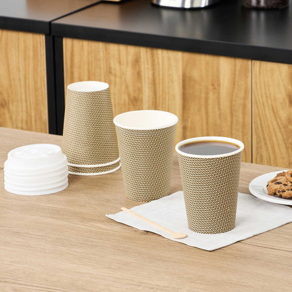 Thanks to the sturdy double-walled construction, these cups stay cool to the touch and will never burn your fingers. No costly sleeves or wasteful double cupping needed!