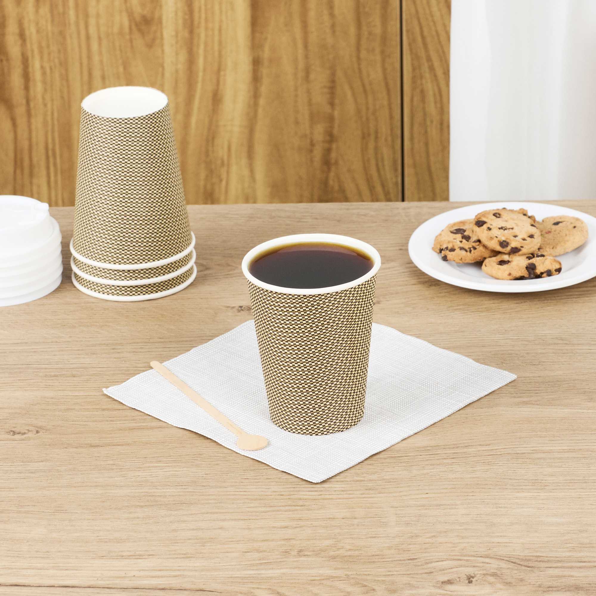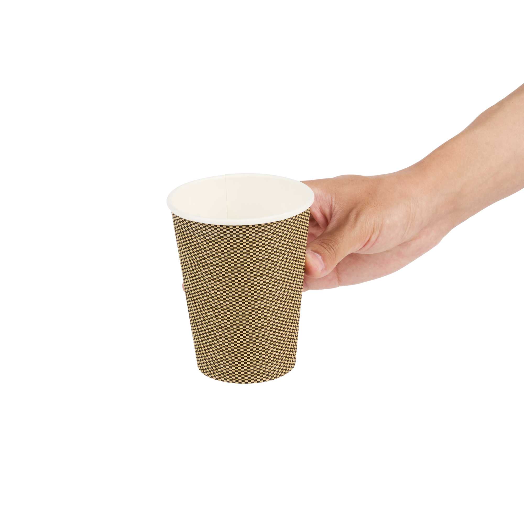 12 OZ MOCHA PIN CHECK PAPER COFFEE CUP - SPIRAL WALL