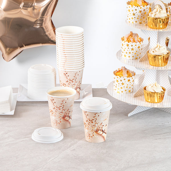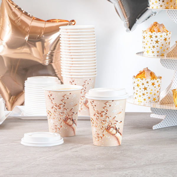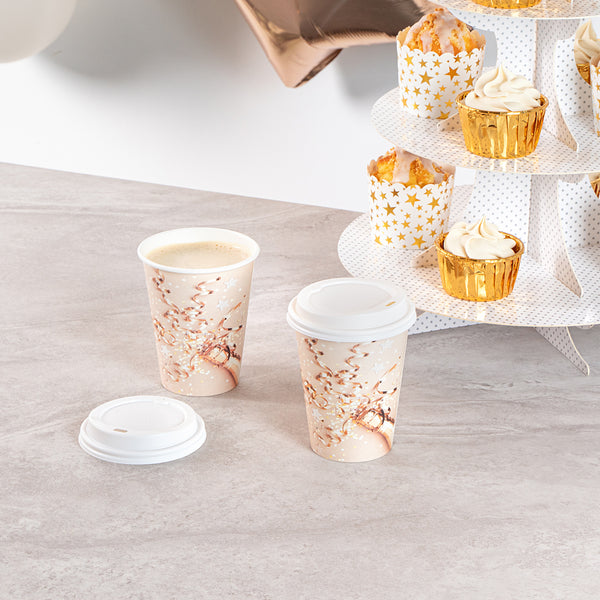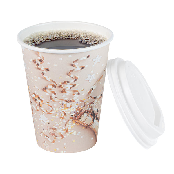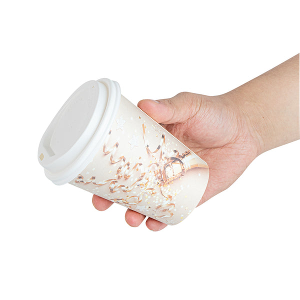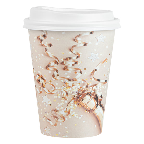 12 OZ NEW YEAR'S EVE PAPER SINGLE WALL COFFEE CUP - WITH LID