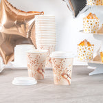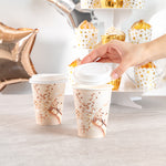 Celebrate in style with our Restpresso 12-ounce New Year's Eve Paper Single Wall Coffee Cups. These hot drink cups come equipped with white plastic lids that form a secure seal, perfect for an on-the-go sipping experience. Featuring a stylish New Year's Eve-themed design, these disposable coffee cups instantly add a touch of festive elegance to your celebrations. The greaseproof PE liner of these paper coffee cups ensures a mess-free drinking experience, making them ideal for coffee lovers. Designed with a rolled rim, these hot cups with lids provide a smooth flow of beverages, enhancing your guests' enjoyment. Crafted from premium paper, these 12-ounce coffee cups are durable and suitable for serving hot and cold beverages. The leak-resistant seams of these coffee cups with lids minimize the risk of potential leaks and keep your drinks contained. Adorned with a "recycle me" message on the bottom, these disposable cups for coffee encourage guests to dispose of them in a planet-friendly way. To facilitate an easy cleanup, these 12-ounce cups are disposable and can be discarded after use. Measuring 3.5 inches in diameter by 4.68 inches in height, these paper drink cups have a capacity of 12 ounces. Sold in a 400 count box.