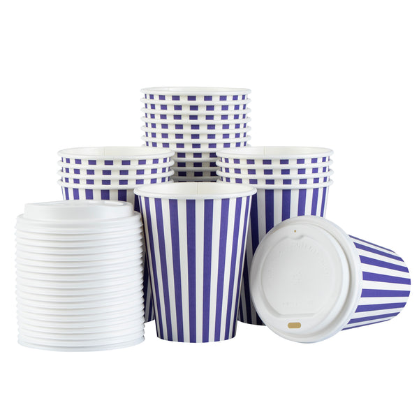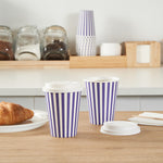 12 OZ PURPLE AND WHITE STRIPE PAPER SINGLE WALL COFFEE CUP - WHITE LID