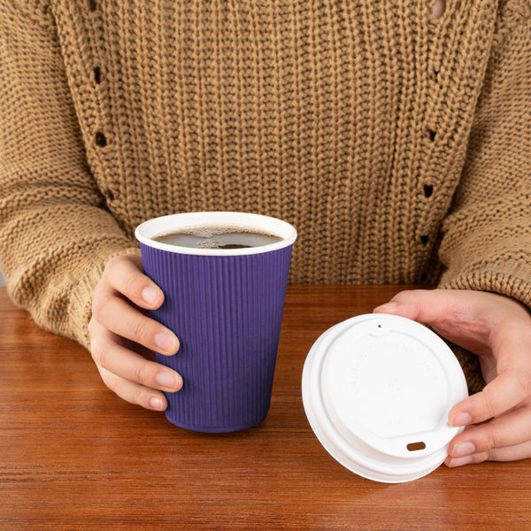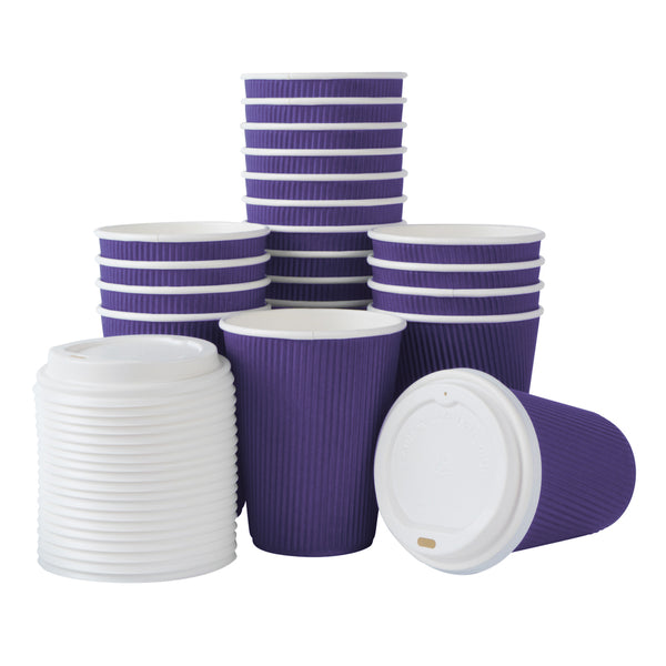 12 OZ ROYAL PURPLE PAPER RIPPLE WALL COFFEE CUP - WITH WHITE LID
