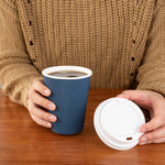 Enhance your beverage service with spill-proof convenience. Restpresso 12 oz Royal Purple Paper Ripple Wall Coffee Cups offer built-in insulation with a purple ripple wall design that efficiently retains heat while keeping hands comfortable, eliminating the need for additional sleeves. These disposable coffee cups with lids are constructed from durable paper to provide a reliable container that prevents leaks and spills, making them ideal for both hot and cold drinks. With a secure white lid, these takeaway coffee cups ensure drinks remain covered during transport, enhancing the customer experience. Crafted from recyclable material, they support eco-friendly dining operations, aligning with sustainability efforts. Measuring 3.6 inches in width, 3.6 inches in length, and 5.1 inches in height, these cups are perfectly sized for efficient service in coffee shops, office breakrooms, or catering events. Sold in a 200 count box.