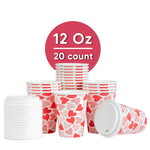 Restpresso 12 oz Valentine's Day Paper Single Wall Coffee Cup - with White Lid - 3 1/2