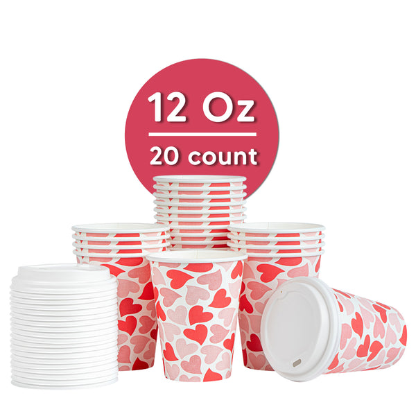 12 OZ VALENTINE'S DAY PAPER SINGLE WALL COFFEE CUP - WITH LID