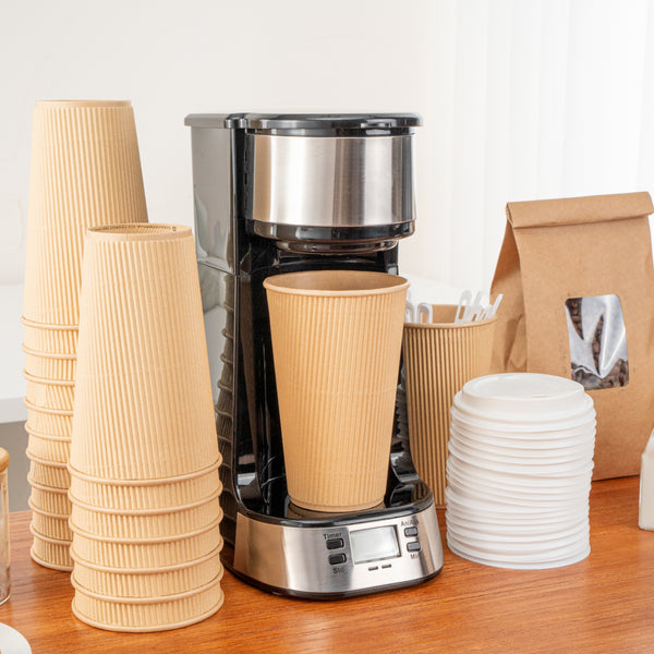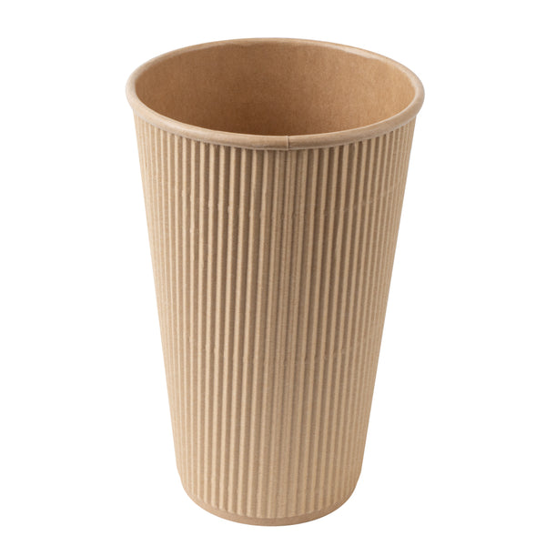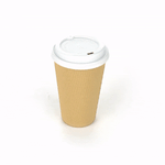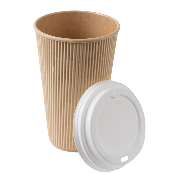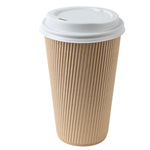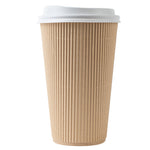 16 OZ KRAFT PAPER RIPPLE WALL COFFEE CUP - WITH WHITE LID