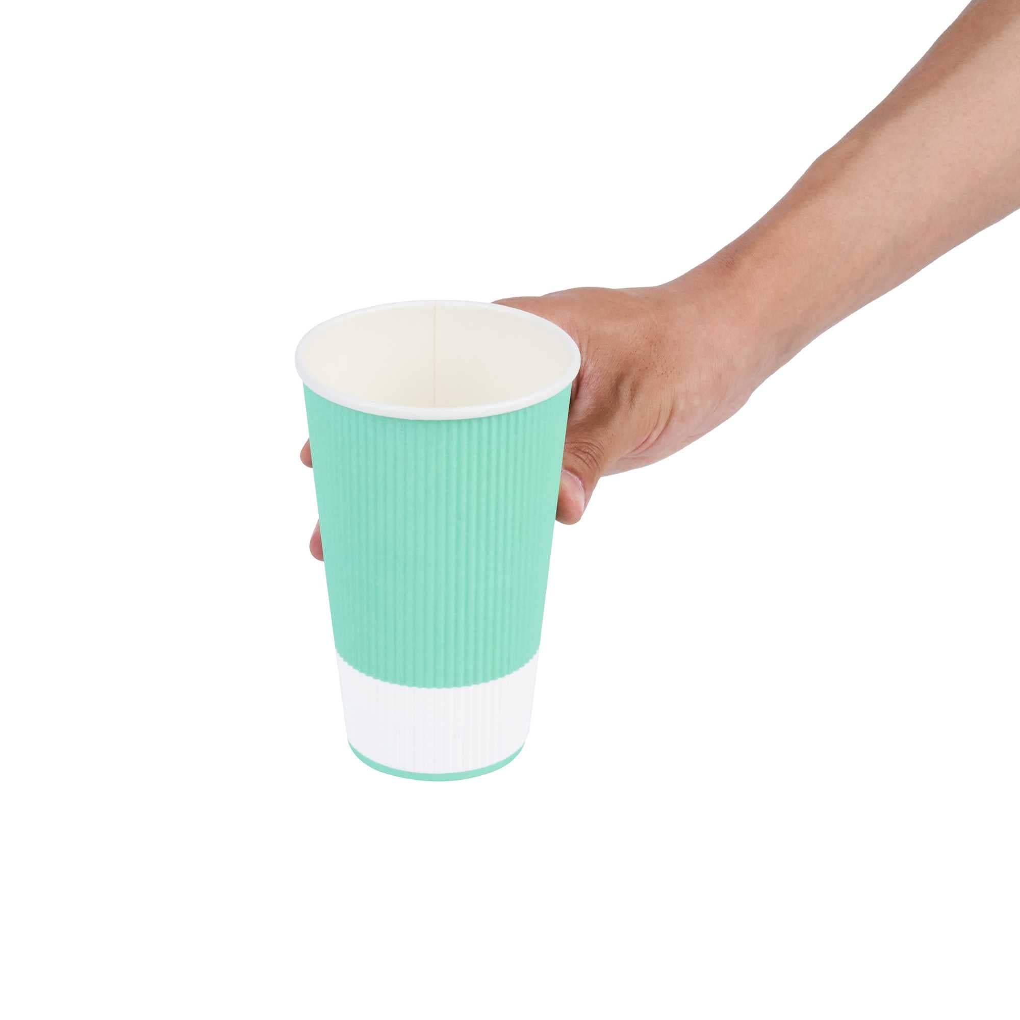 16 OZ LIGHT GREEN PAPER COFFEE CUP - RIPPLE WALL