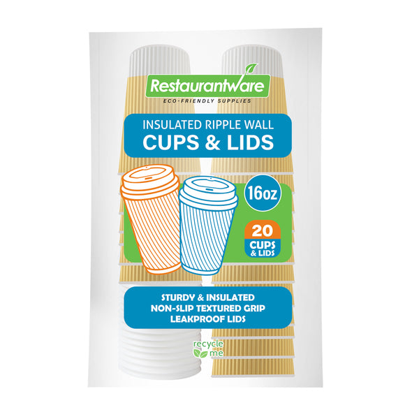 Enhance your beverage service with superior temperature retention. Restpresso Light Yellow Ripple Wall Coffee Cups with Lids provide optimal insulation, ensuring that hot drinks remain steaming without burning your hands, making them ideal paper coffee cups for busy cafés. The ripple wall design not only retains heat but also adds a sturdy non-slip grip, preventing accidents and making these ripple wall cups a reliable choice for foodservice professionals. Manufactured from recyclable paper, these coffee cups with lids promote eco-friendly practices, aligning with sustainable business goals. Measuring 3.6 inches in width and 6.2 inches in height, they are perfect for serving large 16-ounce beverages, meeting customer expectations. Invest in these disposable coffee cups to streamline your operations and enhance customer satisfaction. Each order includes 20 Restpresso Light Yellow Ripple Wall Coffee Cups with Lids.