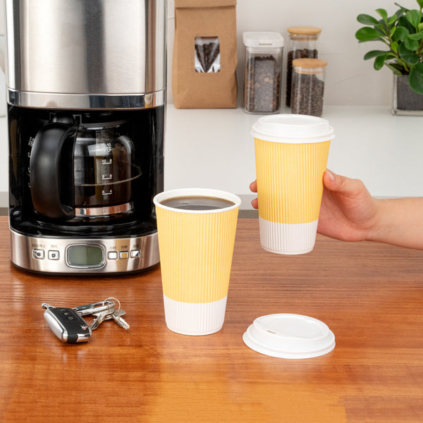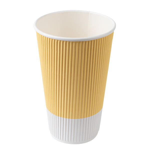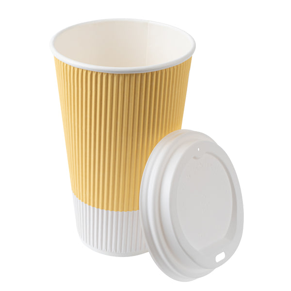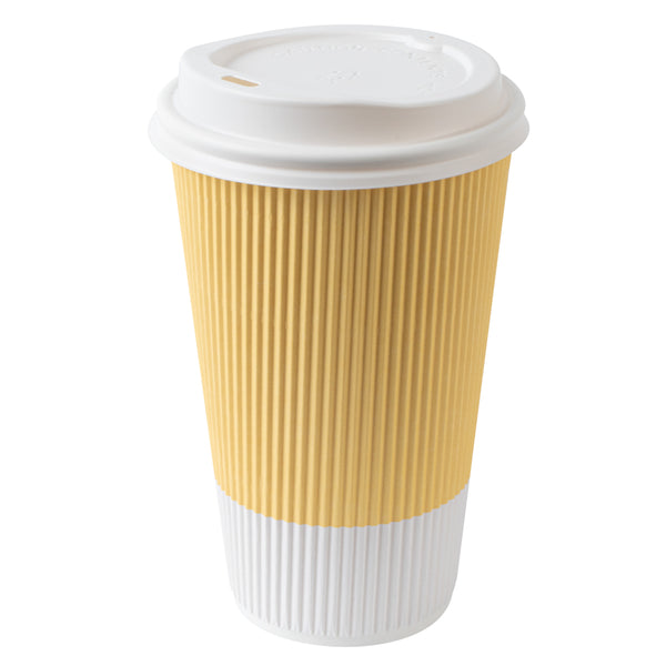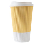 16 OZ LIGHT YELLOW PAPER RIPPLE WALL COFFEE CUP - WITH WHITE LID