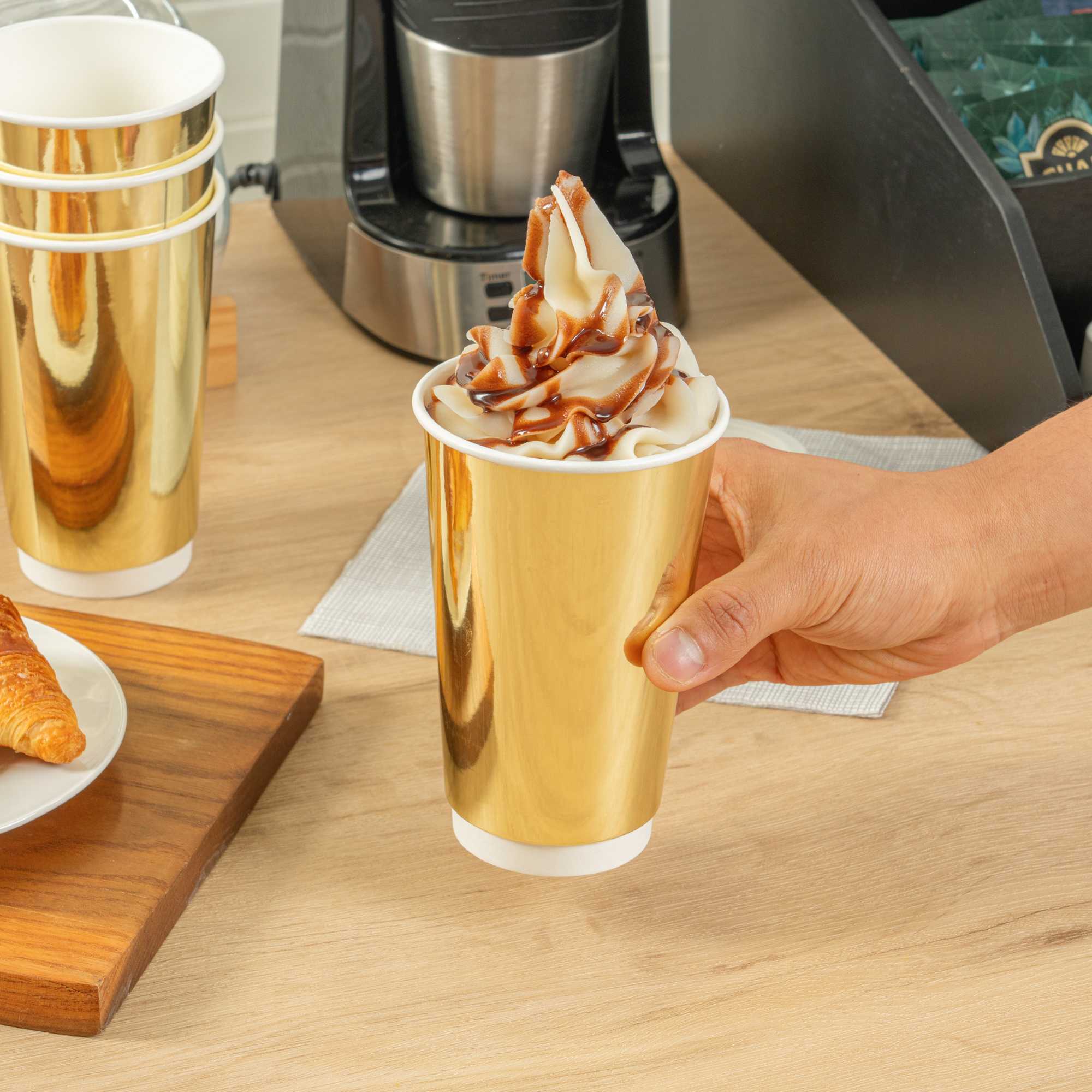 16 OZ METALLIC GOLD PAPER HOT / COLD CUP