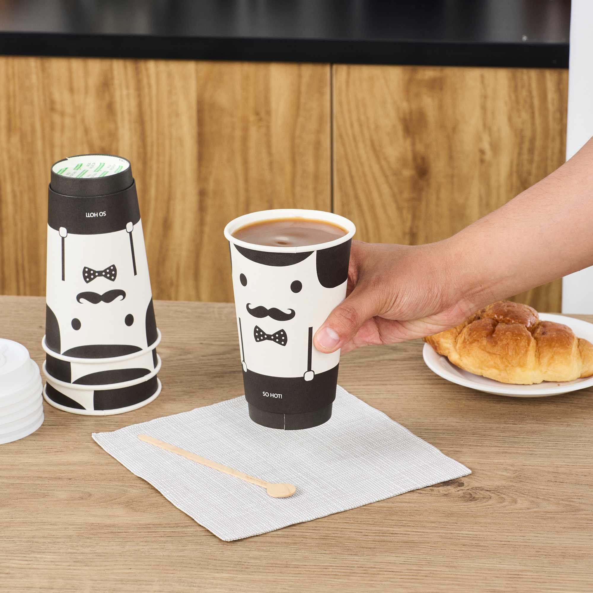 Thanks to the sturdy double-walled construction, these cups stay cool to the touch and will never burn your fingers. No costly sleeves or wasteful double cupping needed!