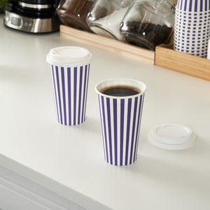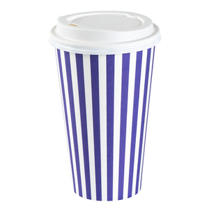 16 OZ PURPLE AND WHITE PAPER SINGLE WALL COFFEE CUP - WITH LID