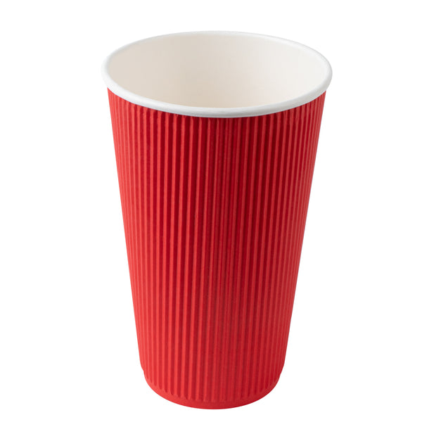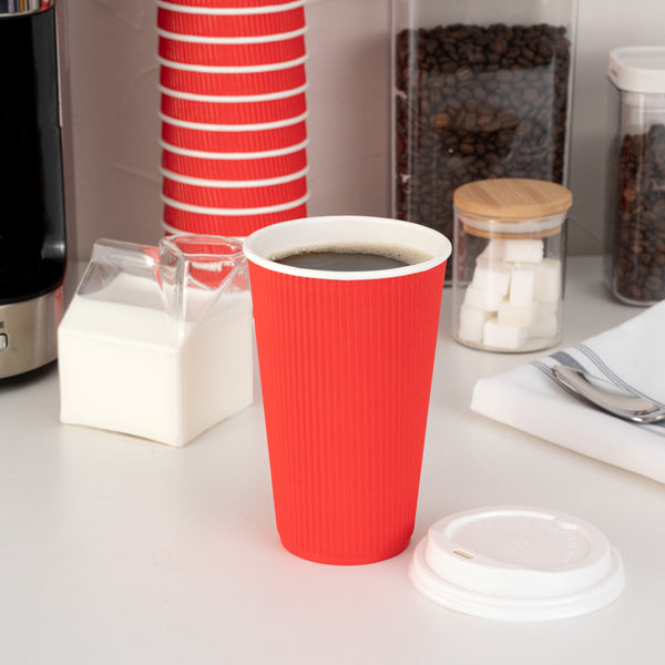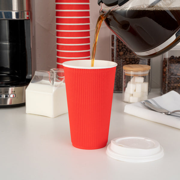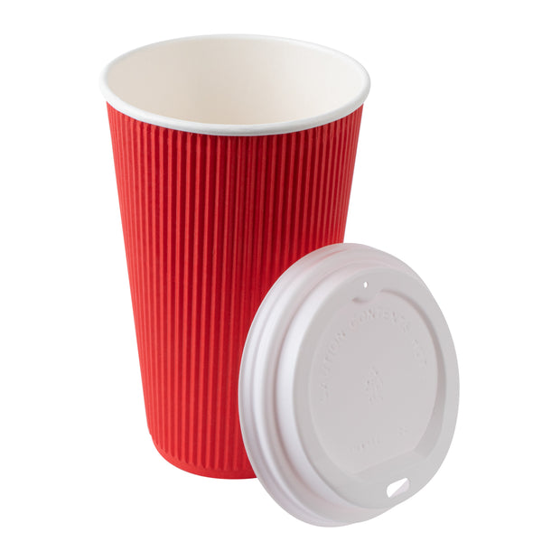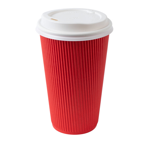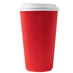 16 OZ RED PAPER RIPPLE WALL COFFEE CUP - WITH WHITE LID