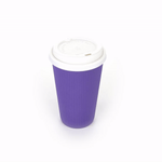 16 OZ ROYAL PURPLE PAPER RIPPLE WALL COFFEE CUP - WITH WHITE LID