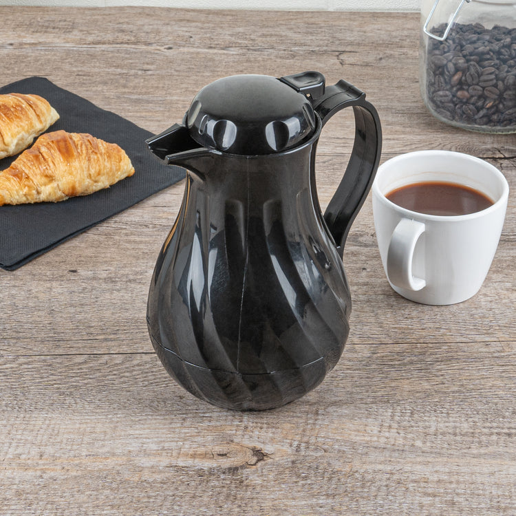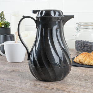 These plastic coffee servers have a swirled pattern that adds an aesthetic appeal, making them visually attractive and enhancing the overall presentation of your beverages. Add a touch of elegance to your serving experience.