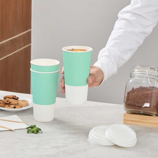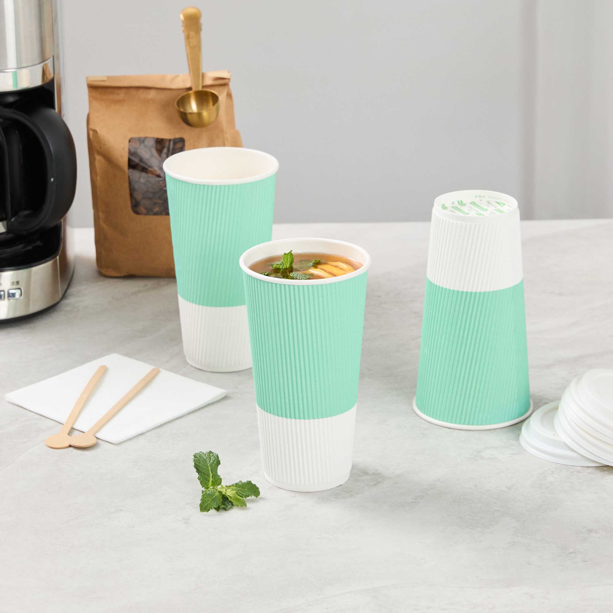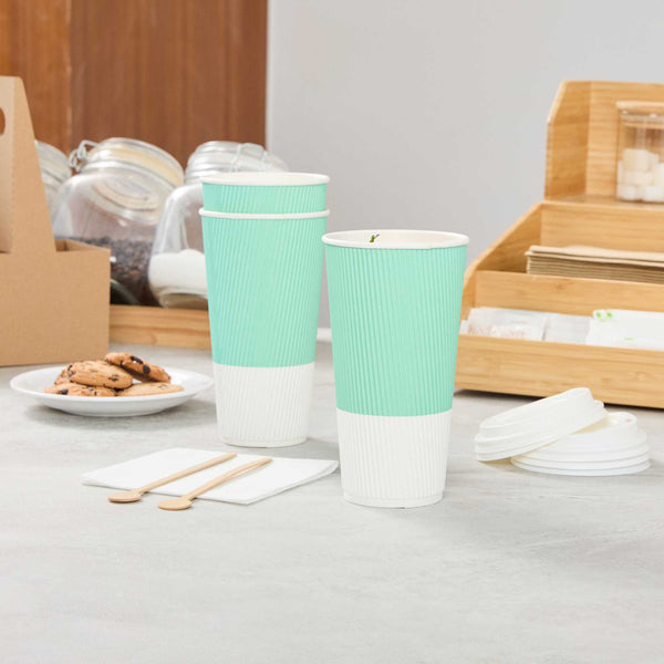 20 OZ LIGHT GREEN PAPER COFFEE CUP - RIPPLE WALL