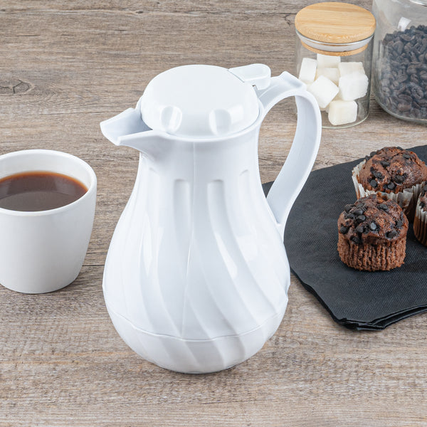 These plastic coffee servers have a swirled pattern that adds an aesthetic appeal, making them visually attractive and enhancing the overall presentation of your beverages. Add a touch of elegance to your serving experience.