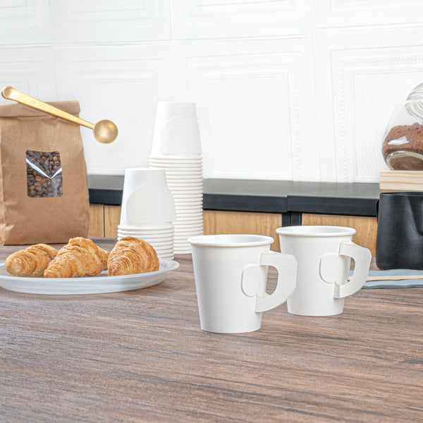 7 OZ WHITE PAPER COFFEE CUP - WITH HANDLE, SINGLE WALL