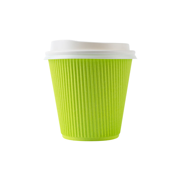 8 OZ ECO GREEN PAPER RIPPLE WALL COFFEE CUP - WITH WHITE LID