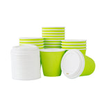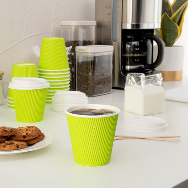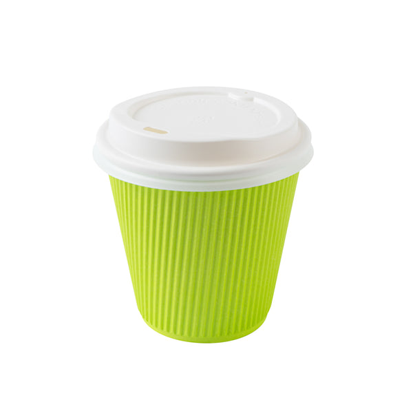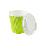 8 OZ ECO GREEN PAPER RIPPLE WALL COFFEE CUP - WITH WHITE LID