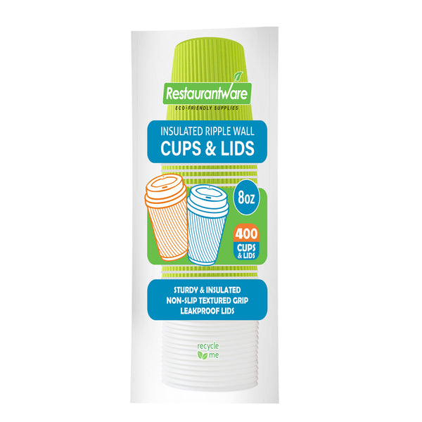 Enhance your service with eco-friendly and dependable takeaway solutions. Restpresso 8 oz Eco Green Paper Ripple Wall Coffee Cups feature a ripple wall design, providing built-in insulation that ensures safe handling of hot beverages without the need for additional sleeves, improving efficiency in busy coffee shops. These ripple wall coffee cups are equipped with secure white lids to prevent spills during transportation, making them perfect for customers on the go. Crafted from recyclable paper, they support sustainable business practices, appealing to environmentally conscious patrons. Measuring 3.6 inches in diameter and 4.1 inches in height, these green coffee shop takeaway cups not only keep your beverages hotter for longer but also add a vibrant touch to your presentation. Elevate your service and reinforce your commitment to sustainability with these practical and visually appealing options. Sold in a 400 count box.